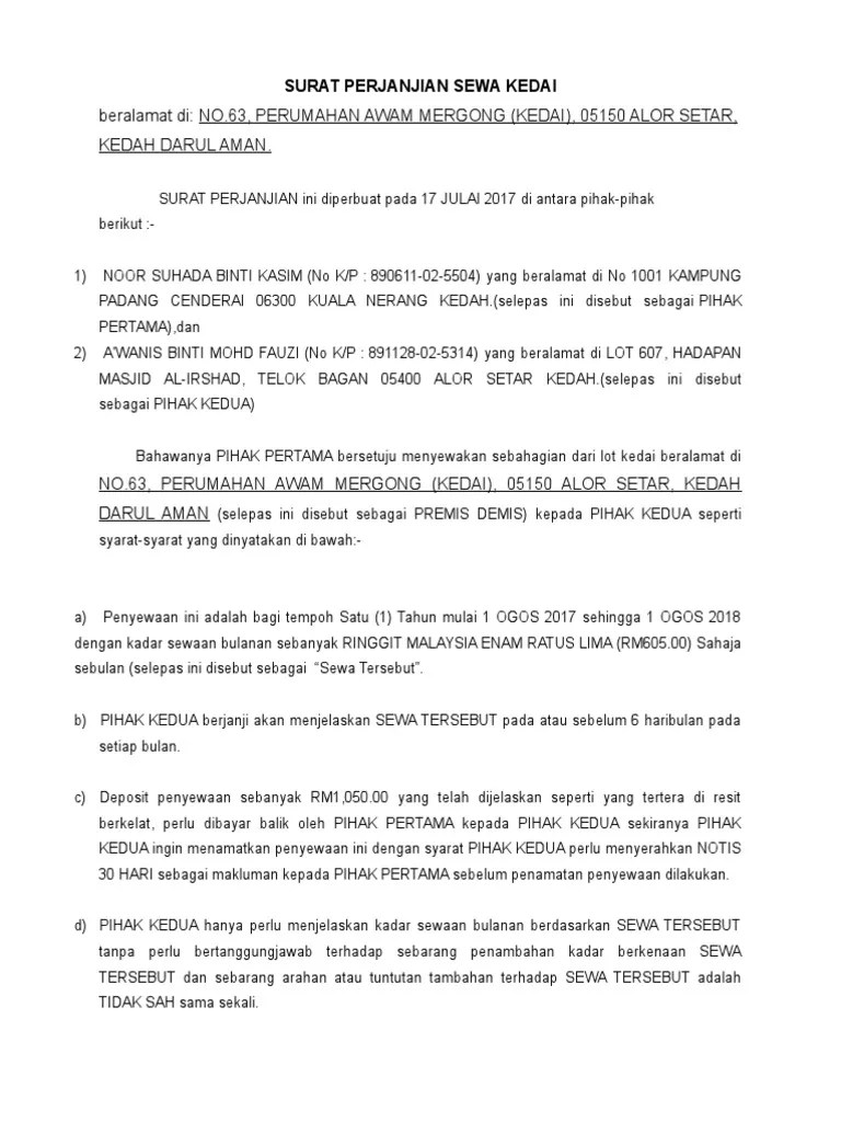 Contoh surat perjanjian sewa rumah, syarat tenancy agreement 2022 dan download format word dan pdf antara landlord dan penyewa contoh perjanjian sewa kedai. Apabila surat keluar atau menamatkan kontrak, kedai .
